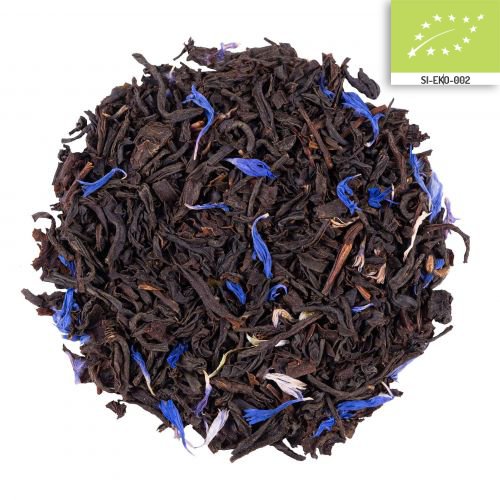 Blue Earl Grey BIO je prefinjena različica klasičnega Earl Grey čaja, obogatena z nežnimi cvetovi plavice. Osnovo predstavlja močan in poln Assam črni čaj, ki s svojo globoko, rahlo malto noto ustvari čvrsto osnovo. Naravna aroma bergamotke poskrbi za značilen svež, citrusno-aromatičen pridih, medtem ko modri cvetovi plavice čaju dodajo eleganten vizualni kontrast in blag cvetličen dotik.