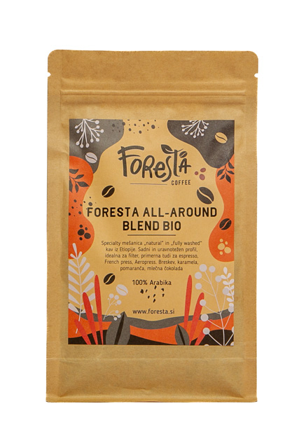 Zelo zanimiva BIO mešanica etiopskih naravnih (natural) in pranih (fully washed) specialty kav ponuja eksplozijo sadnih okusov (breskev, pomaranča), hkrati pa v ozadju pusti tudi noto mlečne čokolade in karamele. Kljub naravni kislosti, ki je značilna za afriške kave, All-Around Blend je lepo uravnotežen s strani naravnih sladkorjev iz natural kav. Pražimo jo svetlo, idealno predvsem za filter kavo (pour over, V60, Chemex), tako kot za French press, Aeropress ter coldbrew. Tudi v obliki espressa ne bo razočarala, predvsem tiste ki radi probajo nove ali manj klasične okuse.