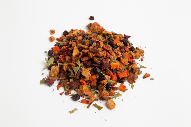 Sestavine: Koščki jabolka, korenčka in rdeče pese, grozdje, list robide, malina, koščki jagode, naravna aroma jagod in borovnic